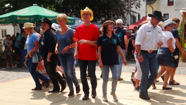 Die Linedancer waren begeistert von der heimeligen Atmosphäre des Lützer Kurplatzes und der tollen Musik von „Two of Wanted“ und haben trotz sengender Hitze die Tanzfläche den ganzen Nachmittag bevölkert.